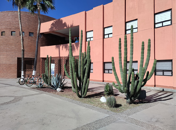 Figura 11. Uso de vegetación xerófila como elemento de jardinería y paisaje en el edificio del Departamento de Arquitectura y Diseño, Centro de las Artes, Unison (2022).