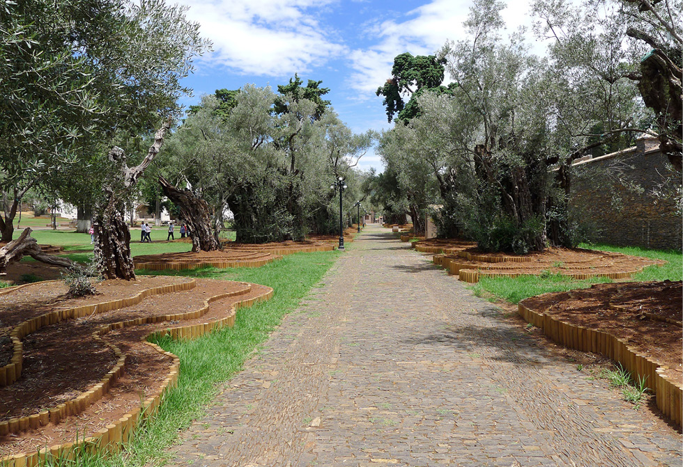 En términos teóricos, la intervención se alinea con los principios de Cesare Brandi,10 respetando la autenticidad, integridad y la historicidad del sitio. La reversibilidad de las intervenciones arquitectónicas y la preservación de las huellas del tiempo en los olivos y las estructuras arquitectónicas garantizan que las futuras generaciones podrán reinterpretar y mantener el valor del conjunto, sin comprometer su esencia original.