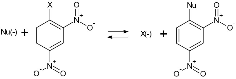 2,4-dinitro clorobenceno con anión tioacetato.