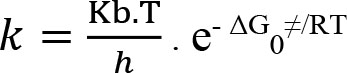Donde Kb es la constante de Boltzmann, h es la constante de Planck, R es la constante universal de los gases, ΔH0≠ es la variación de entalpía de activación estándar molar, ΔS0≠ es la variación de entropía de activación estándar molar y T la temperatura absoluta.