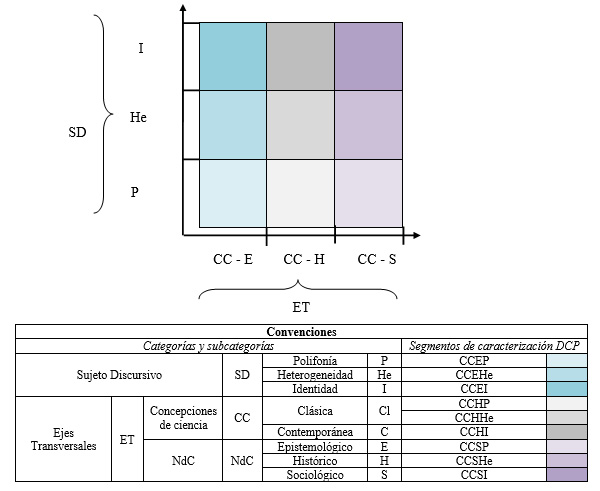 Las categorías (ET) y (SD), se triangularon originando lo que en adelante se denominará segmentos de caracterización del discurso científico del profesor (SC-DCP), formados de acuerdo con la siguiente estructura: