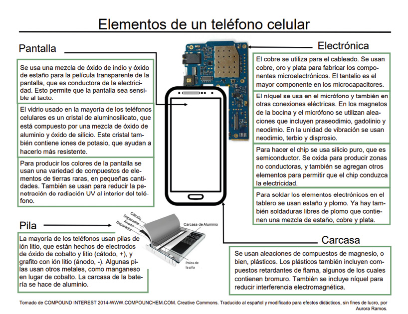 COMPOUND INTEREST (2014). Última consulta 14 de Agosto del 2019.Tomado de: https://www.compoundchem.com/2014/02/19/the-chemical-elements-of-a-smartphone/