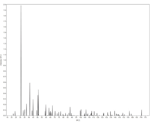 Figure 1. Simulated powder pattern of dolomite. This can be one of the individual patterns provided to students.
