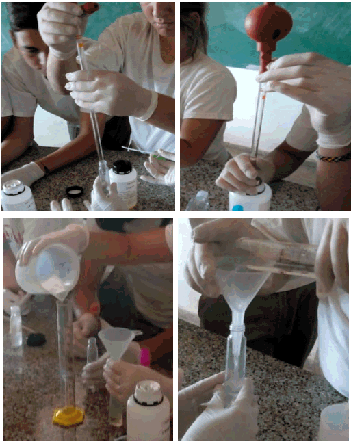 Before starting with the work in the laboratory, a review of the laboratory materials to be used, their uses and hygiene and safety standards were made. Each student designed and produced their perfume based on the following methodology.