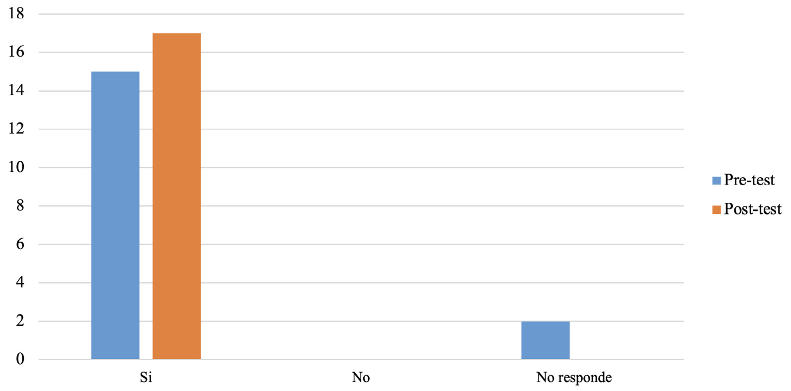 Tabla 1. Análisis resultados pretest y postest con relación a la pregunta número uno.