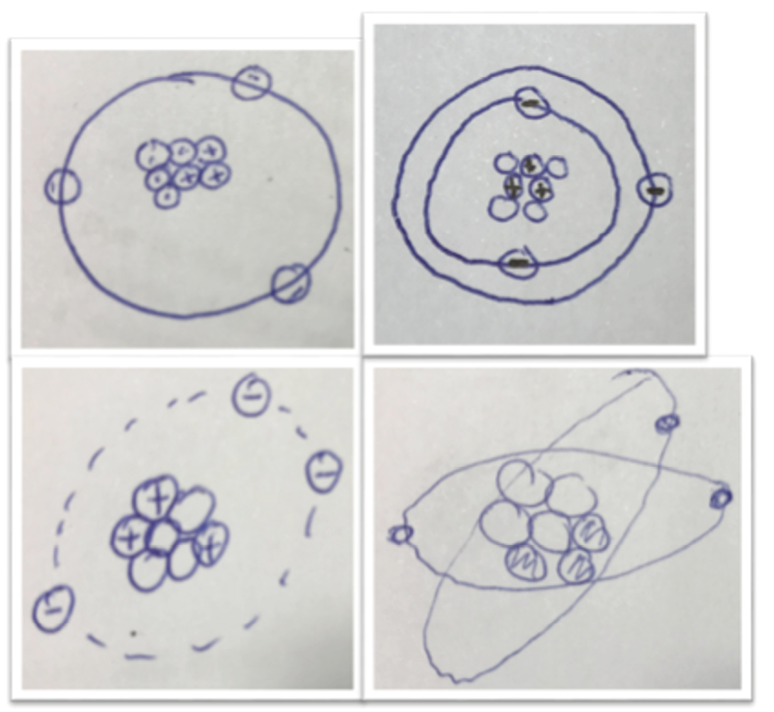 Figure 2: Representations of the atomic structure from the students of Group 1.