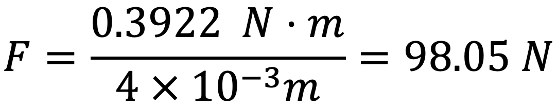 El dosificador usa un motor a pasos modelo NEMA 17, el motor brinda un torque máximo de 0.3922 Nm, tomando en cuenta que este torque se transmite a través de un eje roscado de 8 mm de diámetro tomamos como distancia el radio de dicho eje el cual sería de 4 mm, obtenemos que la fuerza: