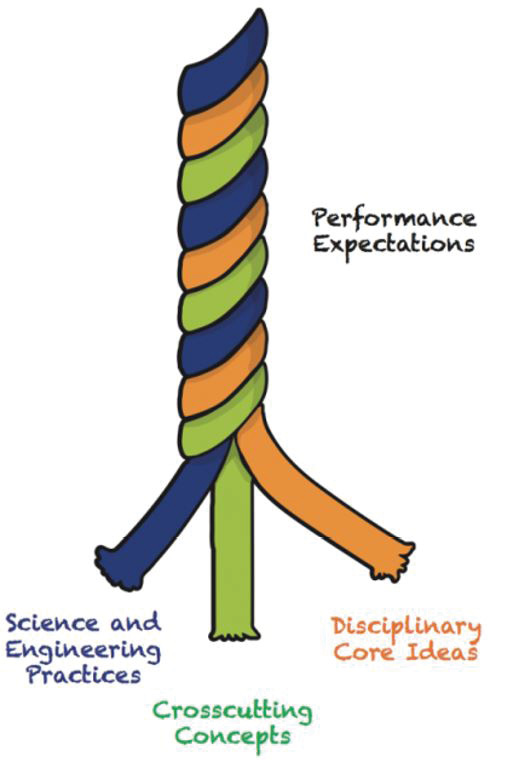 En dicho marco conceptual se establece que la educación científica para la etapa K-12 se debe enfocar en un número limitado de ideas centrales de la disciplina (DCIs, disciplinary core ideas) soportadas e integradas por conceptos transversales (CCCs, crosscutting concepts) y prácticas científicas e ingenieriles (SEPs, science and engineering practices).