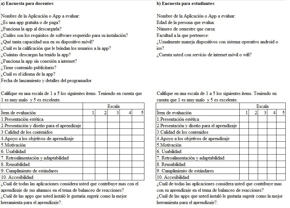 Figura 2. Encuesta para a) docentes y b) estudiantes. Fuente: Elaboración propia.