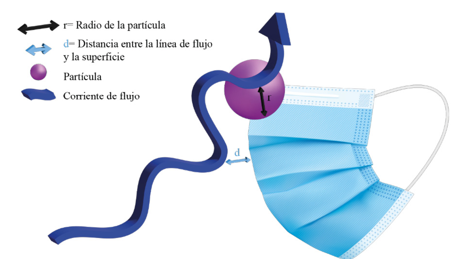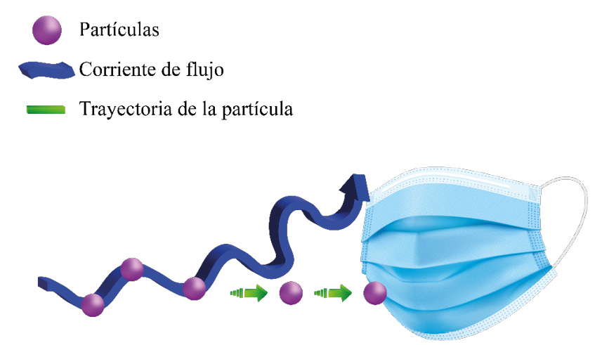 Tomando en cuenta que el virus del SARS-CoV-2 tiene un tamaño de 0.1 µm, y que para transportarse en la corriente de flujo se debe depositar en un gotícula respiratoria adquiriendo un tamaño mayor a 1 µm, se puede decir que la captura de la partícula puede darse mediante alguno de los mecanismos mencionados.