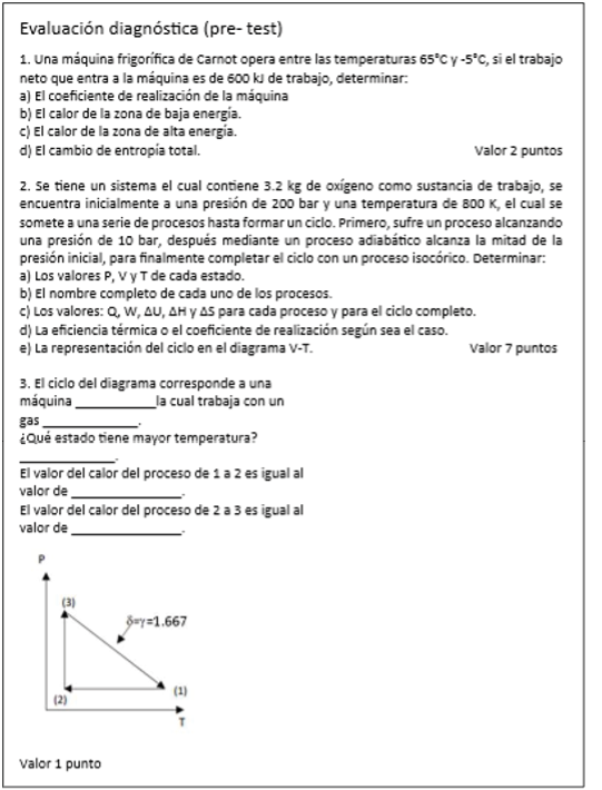 El profesor prepara y aplica el instrumento de evaluación (procesos y ciclos termodinámicos) a los grupos (Figura 1).