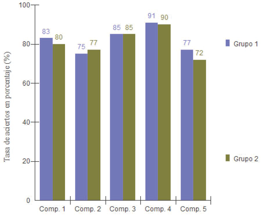 Figura 2. Tasa de éxito de los grupos de estudio en el pre-test según la competencia abordada.