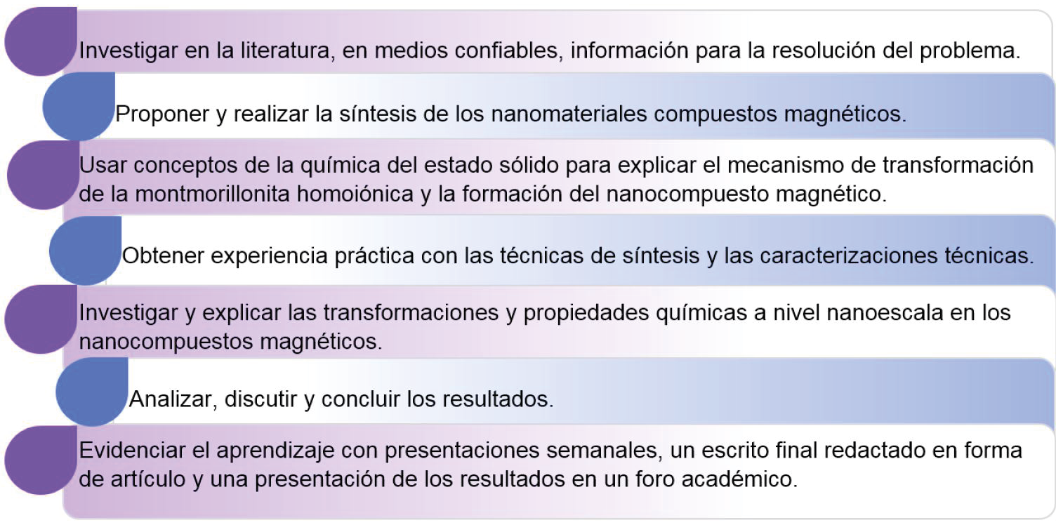 Los estudiantes con la propuesta del problema a resolver, abordan el desarrollo de nanomateriales compuestos a base de nanopartículas magnéticas en arcilla montmorillonítica; en donde el maestro o instructor es un apoyo, una guía para la consecución del proyecto.