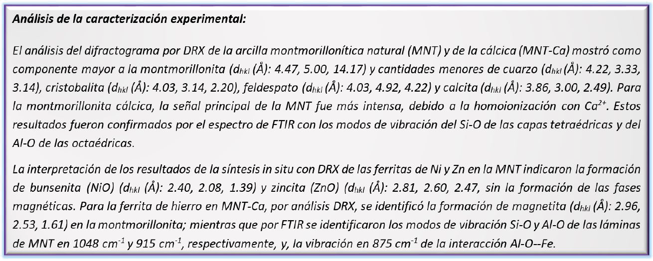 3) Usaron los datos experimentales para determinar, analizar e interpretar la modificación de la arcilla y la formación del nanocompuesto magnético.