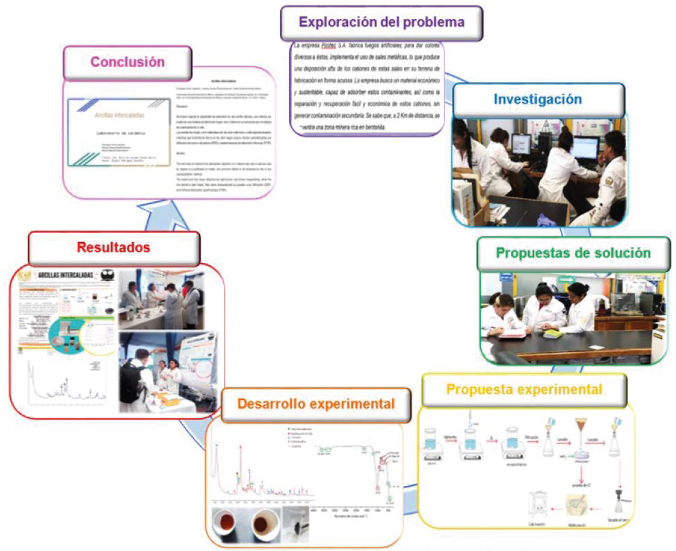 El propósito de esta propuesta experimental fue plantear a los estudiantes el desarrollo de un nanocompuesto cerámico con base en nanopartículas magnéticas de hierro soportadas en una arcilla montmorillonítica, NPM-Fe/MNT, para la remediación de la contaminación de lagos y suelos, por medio de la metodología del ABP. Con esta didáctica, se les anima a los estudiantes a desarrollar un proyecto de investigación real, al plantearles un problema o un reto, de tal forma que se motiven a investigar en la literatura; a proponer objetivos e hipótesis; a diseñar el desarrollo experimental; a realizar la experimentación y caracterización de sus productos; así como, el analizar y discutir los resultados para animarse a presentarlos ante la sociedad. Lo cual, les ofrece la posibilidad de motivarlos en el aprendizaje relacionado con el conocimiento de la estructura de los sólidos, los métodos de síntesis y la caracterización de los materiales cerámicos; importantes en la Química del Estado Sólido y de la Ciencia y la Química de los Materiales, por su influencia directa en el desarrollo de habilidades de investigación en la búsqueda de información, metodología, práctica experimental, trabajo colaborativo y actitud crítica, que fomentan el desarrollo de habilidades de comunicación, resolución de problemas y el autoaprendizaje. Evidenciado por escrito, con un documento tipo artículo de investigación y la exposición experimental en un medio social.