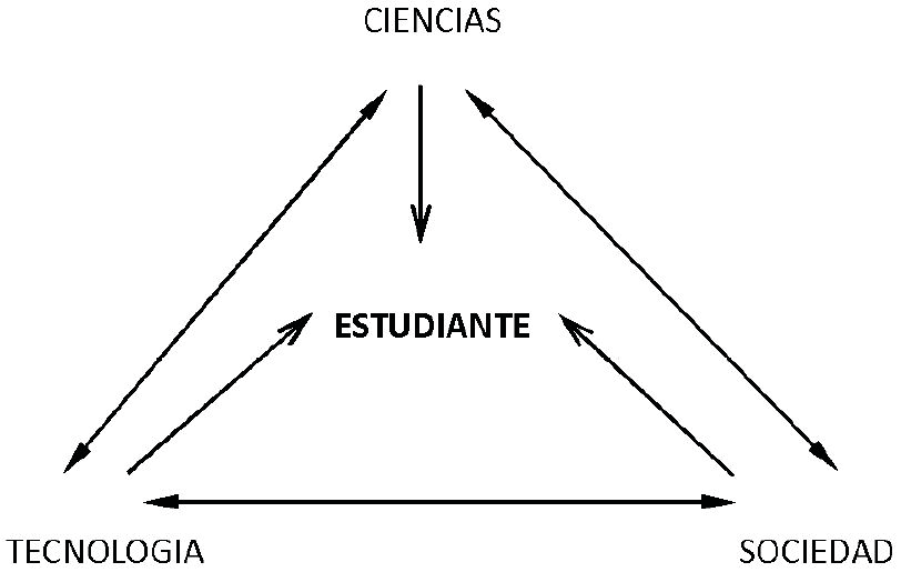 En los fundamentos de la enseñanza CTS se advierte un cambio estructural en el tradicional triángulo didáctico: el estudiante, en esta corriente, ocupa un lugar de importancia en la que el docente sólo aparece como mediador entre él y los diferentes contenidos. Otra particularidad de este modelo es que los contenidos no aparecen agrupados en una única posibilidad de enseñanza (como en el modelo cientificista tradicional) sino que se los abarca desde tres dimensiones interrelacionadas: ciencia, tecnología y sociedad.