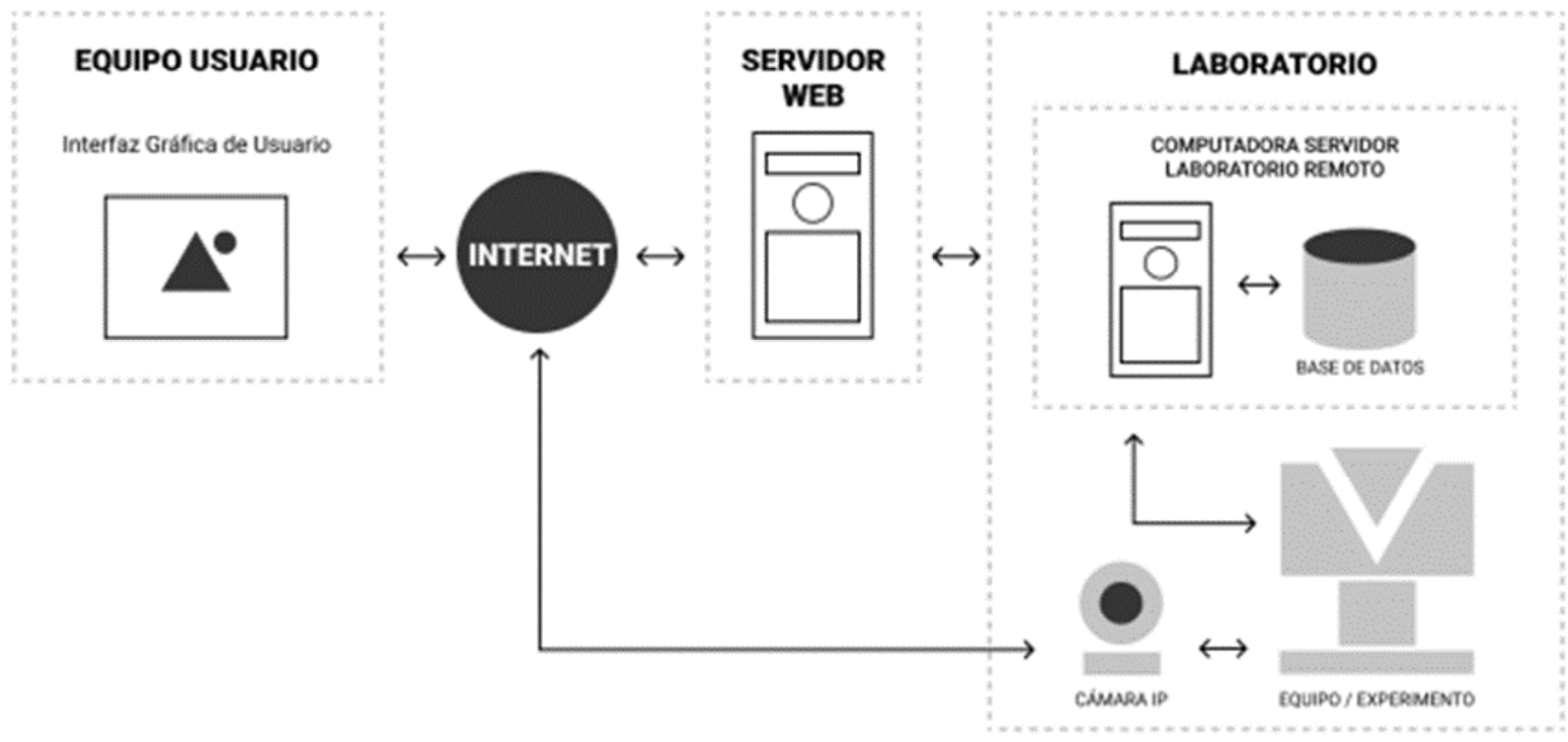Figura 2. Arquitectura general de un Laboratorio Remoto. Nota. La figura muestra la conformación de un Laboratorio Remoto. Figura tomada de Montero-Miranda, 2022.
