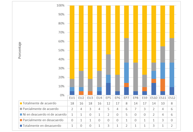 El análisis de los datos del test del diferencial semántico se puede observar en la tabla 5, reflejando el valor de la frecuencia de los resultados.