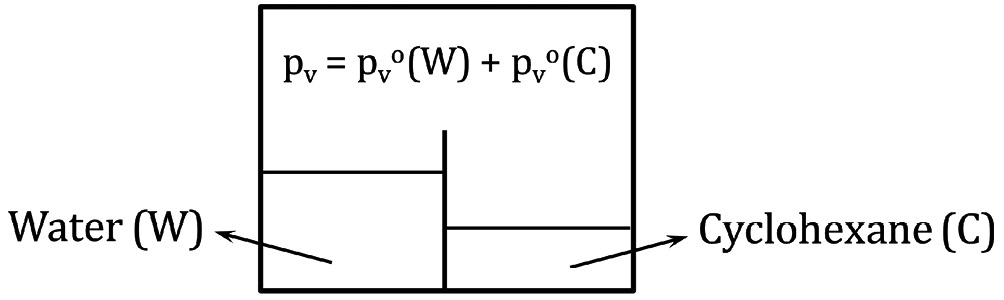 Finally, the vapor pressure of a mixture of water and cyclohexane is calculated (equation 1) as: