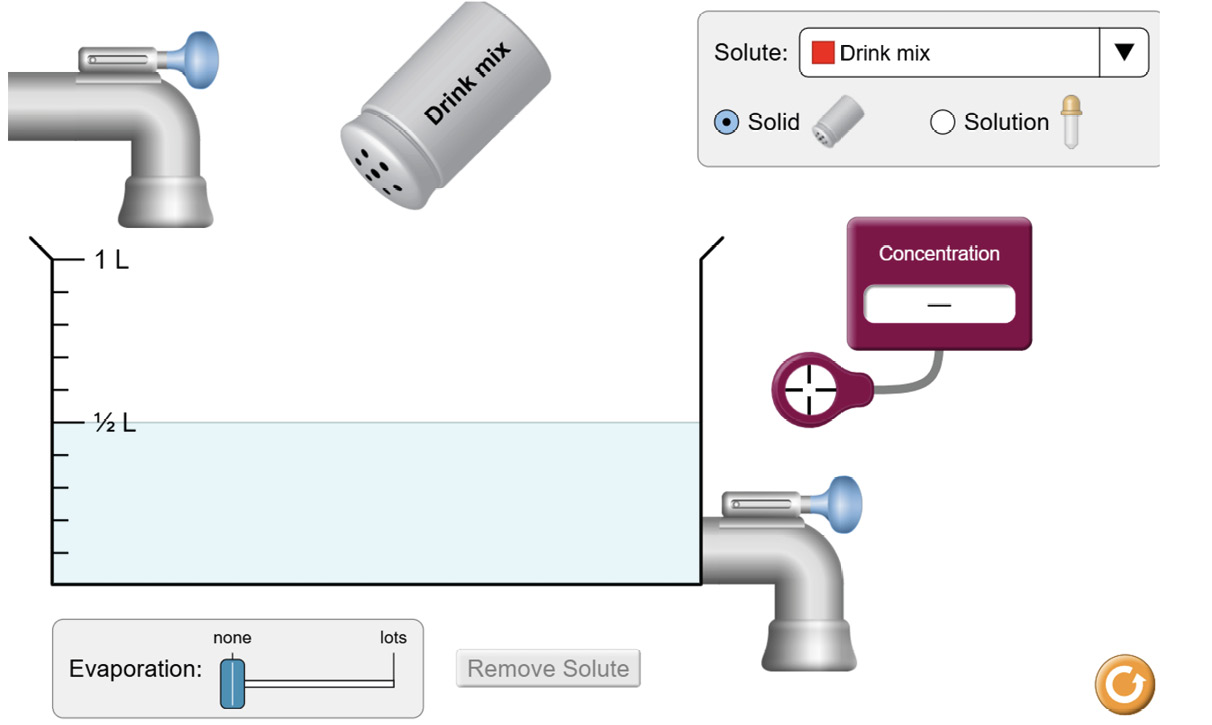 Para ayudar a resolver el problema de la empresa de bebidas, vamos a determinar la concentración [mención de concepto - conceptual] de un determinado soluto en la bebida “Drink Mix”. 6. Comienza por seleccionar el soluto [mención de concepto - conceptual] que deseas investigar. |