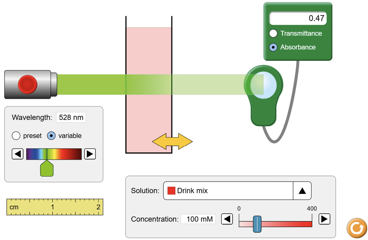 11. Ahora, vuelve a seleccionar la bebida “Drink Mix” con una concentración 0,100 mol/dm³ y, sin cambiar la longitud de onda, registra la absorbancia [mención y aplicación de concepto - conceptual]. |