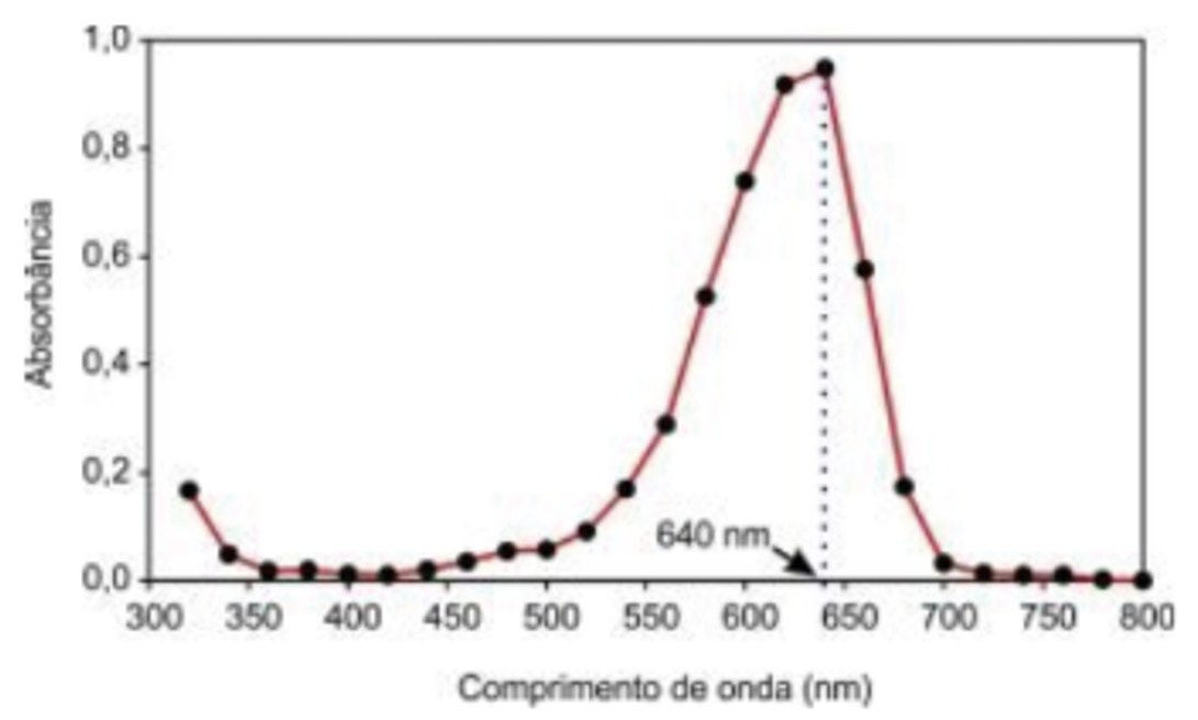 8. Construye el espectro de absorción (A = ƒ (λ)) y concluye cuál es el valor de longitud de onda para el cual el valor de absorbancia es máximo (ver el ejemplo) [mención y aplicación de concepto - conceptual]. |