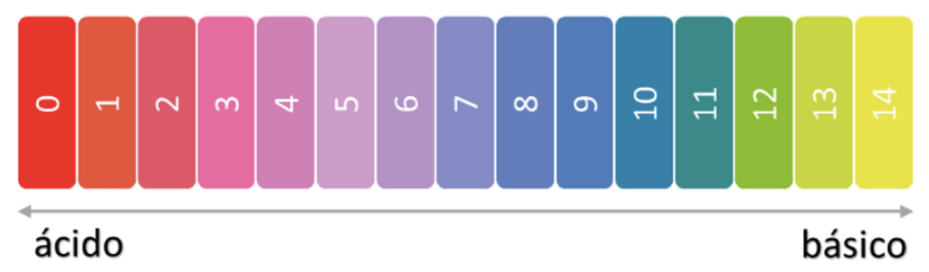 Figura 1. Escala de colores del agua de cocción de col morada como indicador ácido-base.