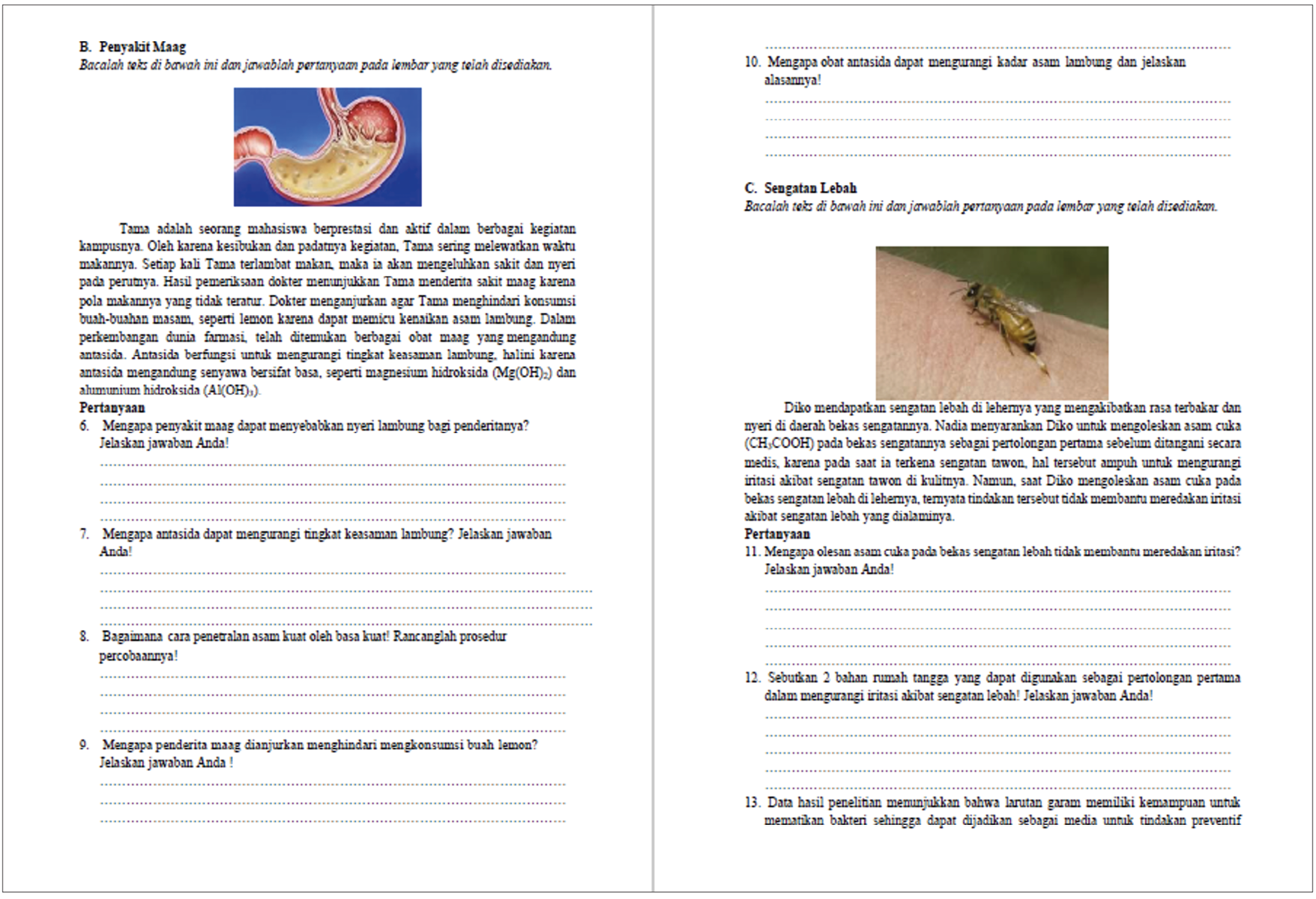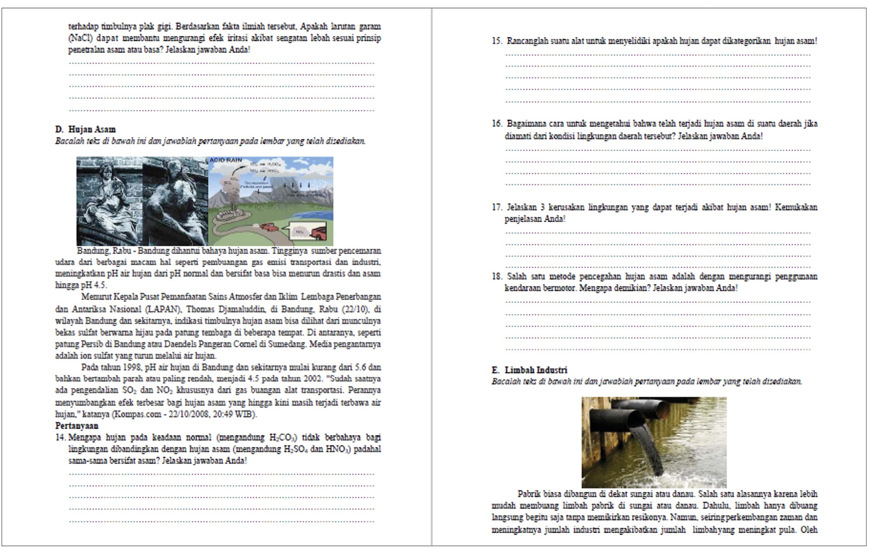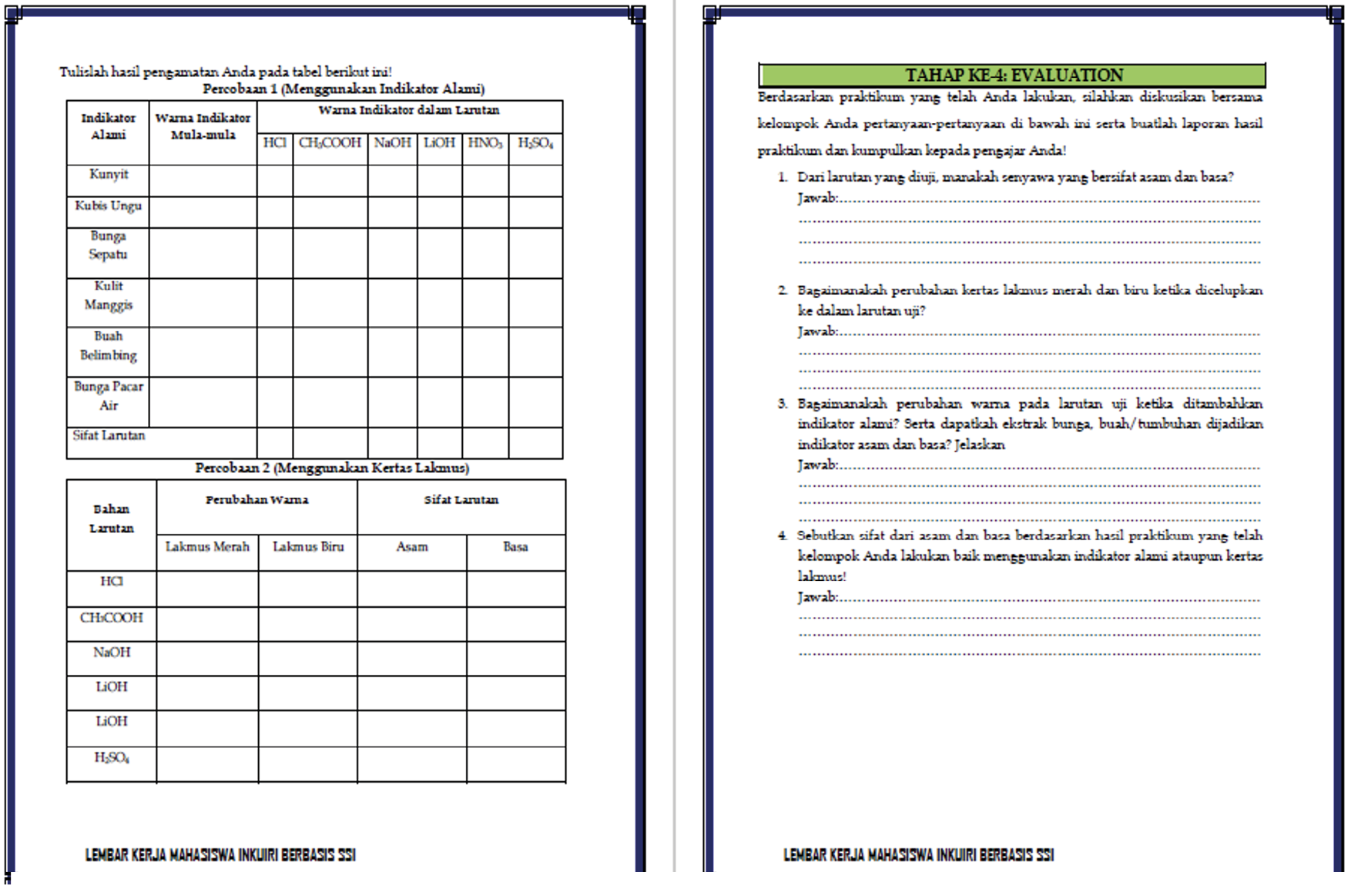 The study utilized two types of instruments: treatment instruments and measurement instruments. The treatment instruments—used during the teaching and learning activities—included the learning syllabus, semester learning plans, and student worksheets (see Appendix 1). The measurement instruments consisted of test items designed to assess students’ chemical literacy skills. These items were developed by the researchers based on established indicators of chemical literacy.