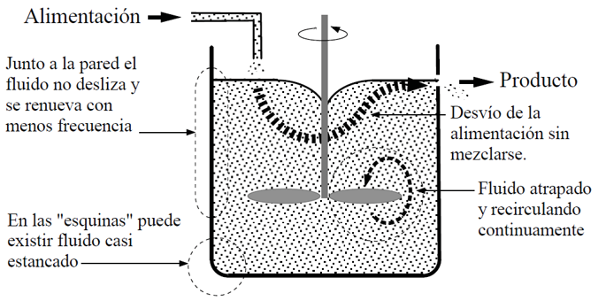 Figura 4. Patrones no ideales de flujo en un reactor agitado continuo [reimpreso con autorización del autor (Tiscareño-Lechuga, 2008)].