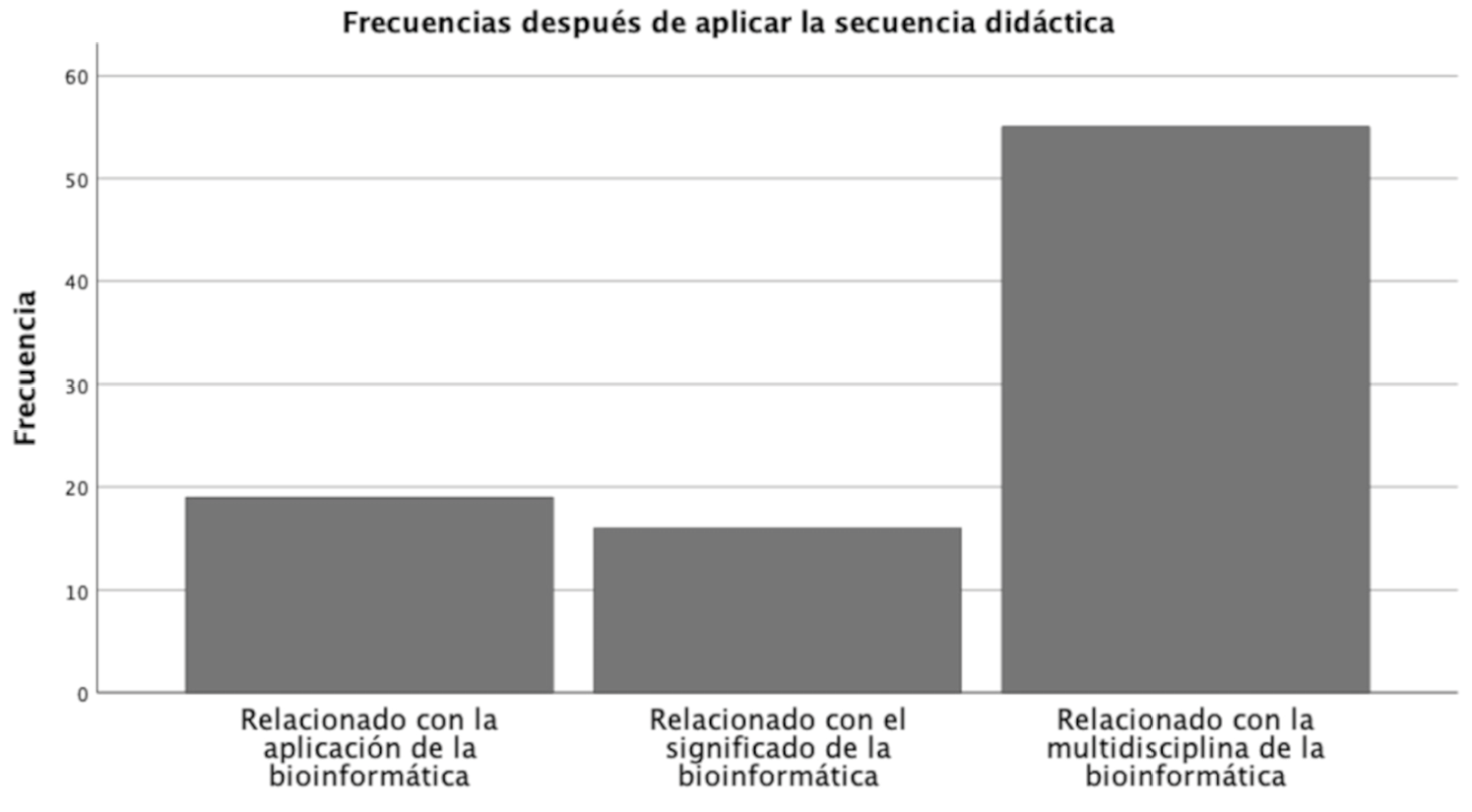 Figura 8. Frecuencias de asociación de aplicación de la bioinformática después de aplicar la secuencia didáctica.