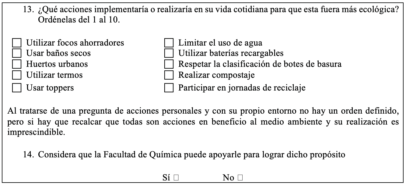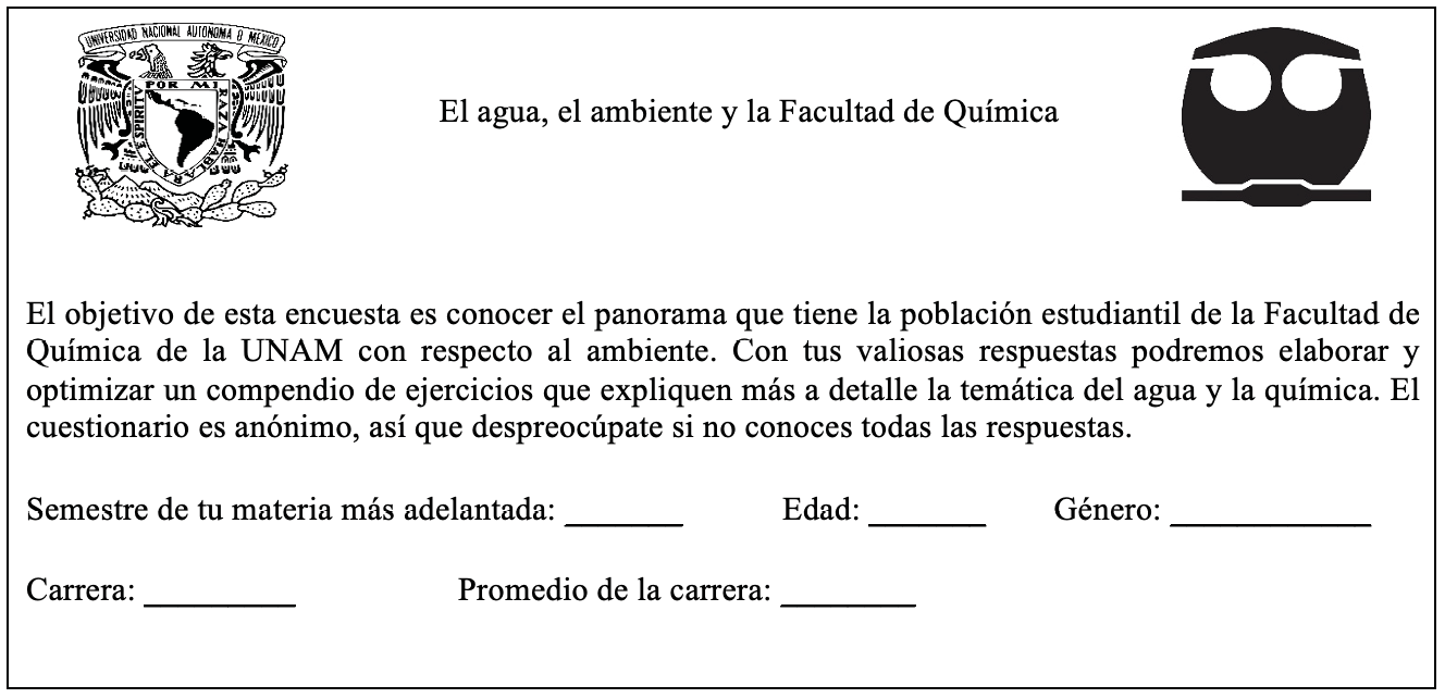 Figura 2.- Encabezado de la encuesta realizada a estudiantes de la Facultad de Química de la UNAM. La encuesta contenía las mismas 15 preguntas presentadas en la Figura 1.