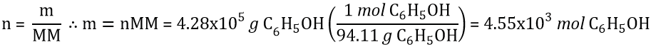 Por último, se determina el volumen de permanganato de potasio a partir de la ecuación de molaridad que relaciona la cantidad de sustancia con el volumen.