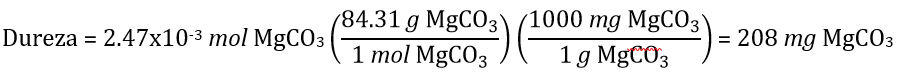 Una vez obtenido el valor de x podemos obtener el valor de X que será la cantidad de sustancia de permanganato.