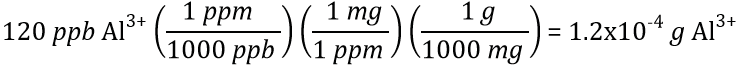 Se obtiene la masa, en gramos, a partir de la concentración en partes por billón de aluminio.