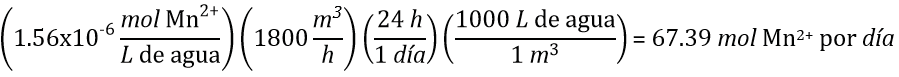 Se determina la cantidad de sustancia de manganeso que se necesita eliminar diariamente, considerando la cantidad de agua suministrada.