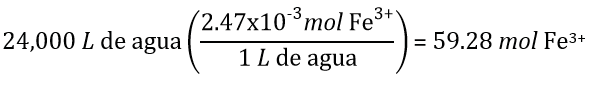 Con esta información, se determina la cantidad de sustancia de Fe3+ presente en un litro de disolución.