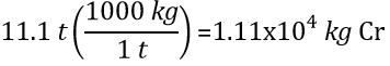 a) Se tiene una masa de 11.1 toneladas de cromo, se realiza la correspondiente conversión recordando que 1 t = 1000 kg
