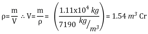 Se calcula el volumen de cromo generado a partir de la ecuación de densidad, que relaciona la masa con el volumen: