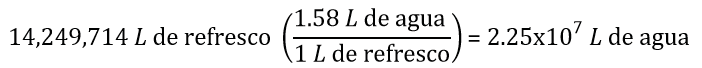 Se realiza el producto entre el volumen promedio de agua para la realización de un litro de refresco con el volumen de litros producidos de refresco al año.