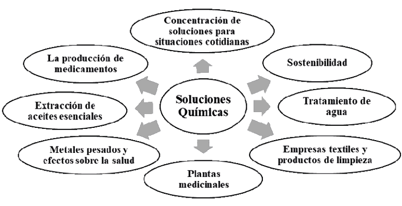 Figura 2. Temas del enfoque CTS que involucran soluciones químicas. Fuente: Elaborada por los autores (2025).