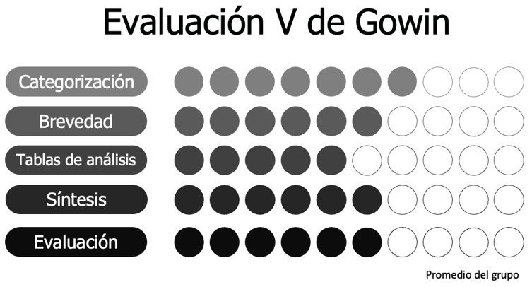 Figura 3. Resultados promedio de la evaluación de las V de Gowin del grupo de Introducción a la Ciencia Forense.
