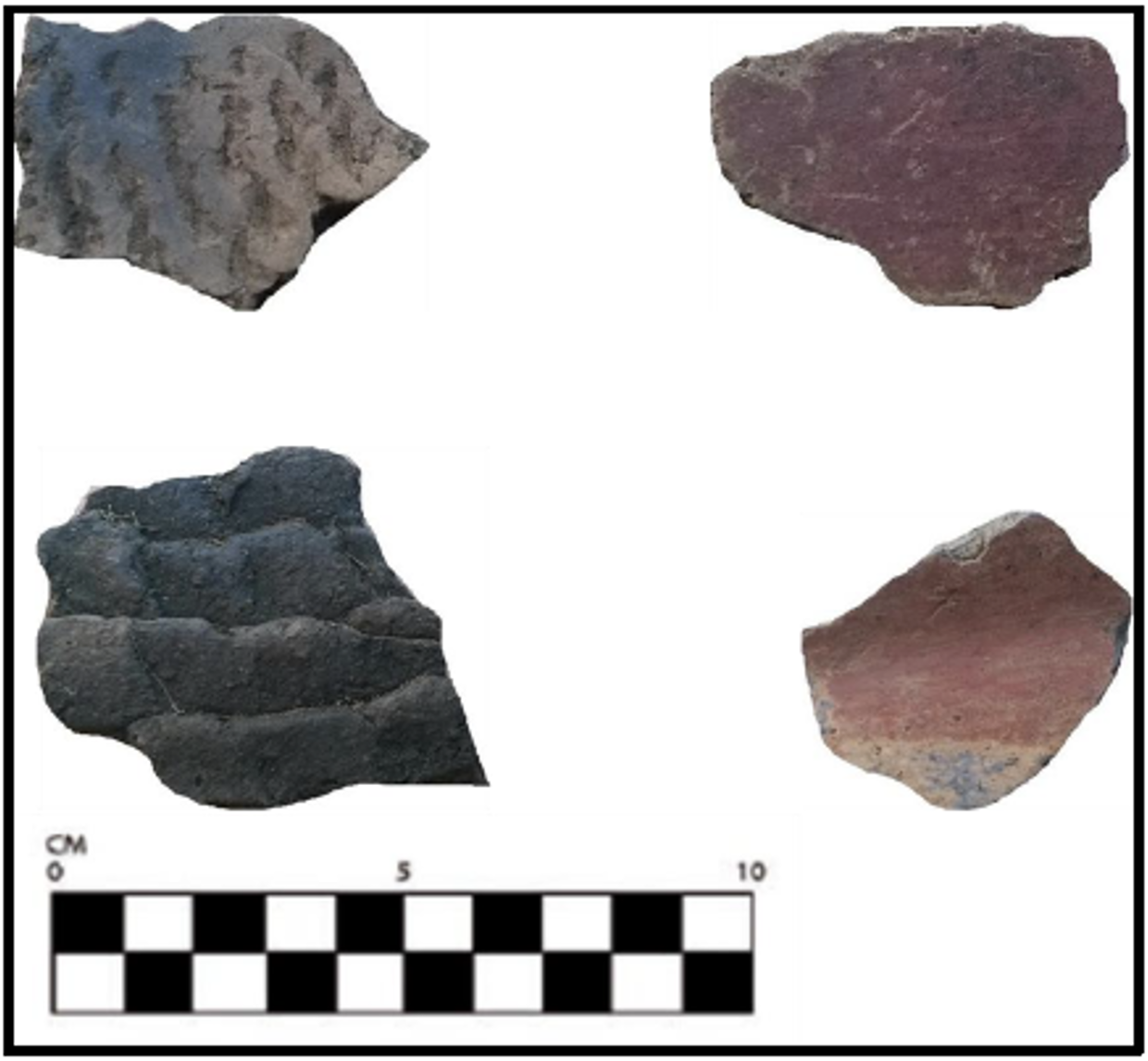 Imagen 2. Fragmentos cerámicos con superficies con decoración atribuida a grupos guaraníes. Fuente: elaboración propia.