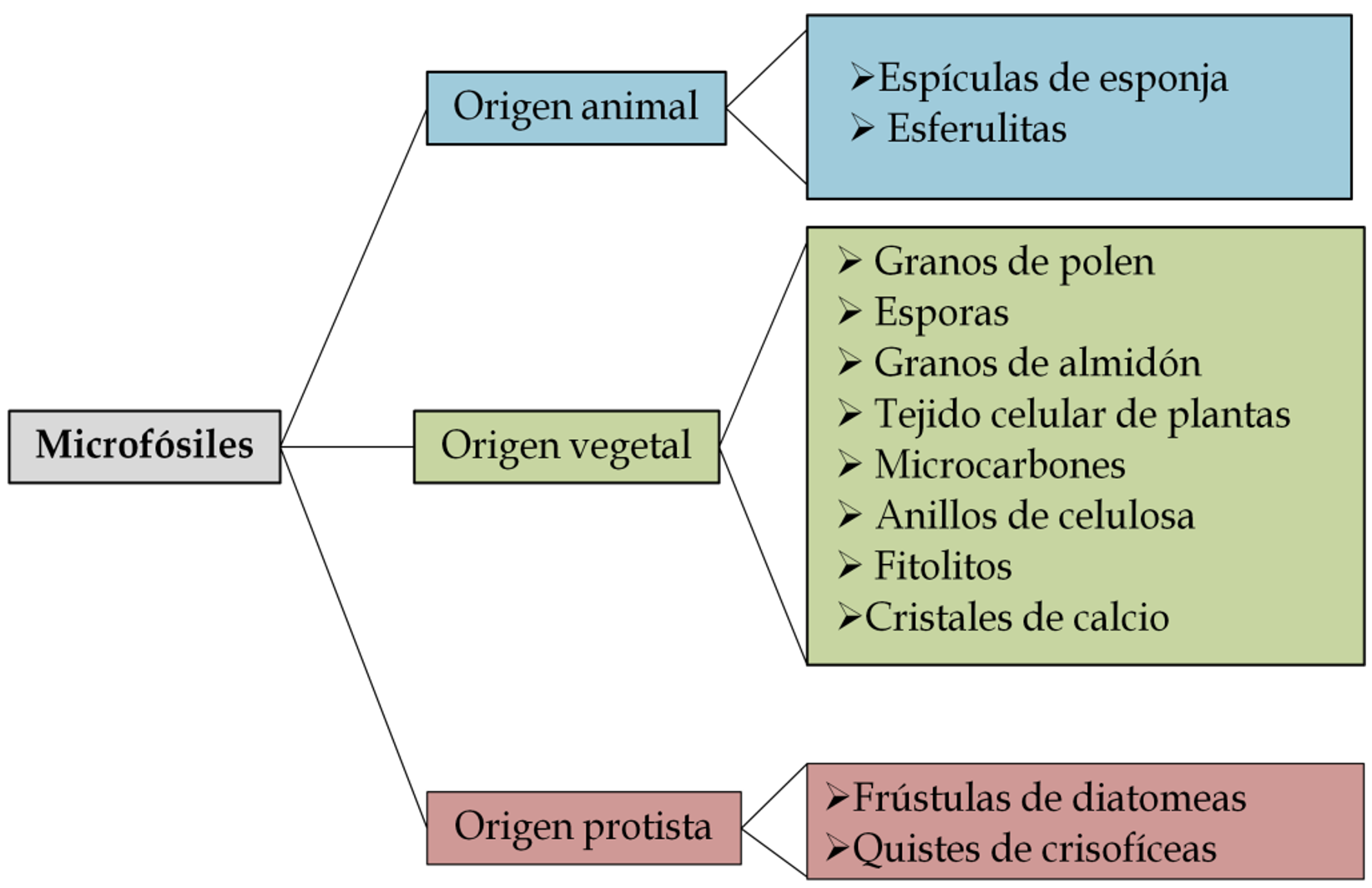 Imagen 3. Clases de microfósiles de acuerdo con su origen (en base a Babot, 2004). Fuente: elaboración propia.